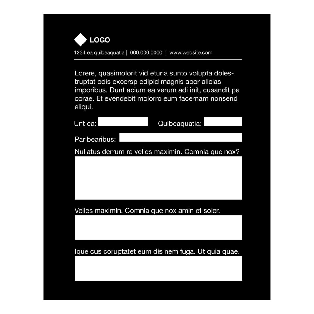 Your choice of a single or double sided 8.5 x 11 inch, branded form set for print or a form fillable digitally. Includes one design concept and two rounds of revisions at no extra cost.