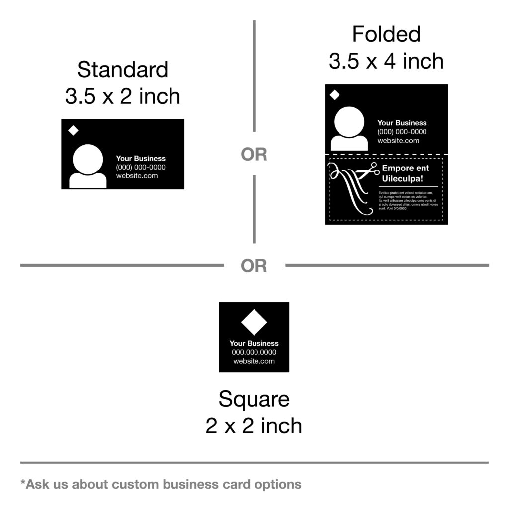 • Business Card Design (Single Sided) | Standard (3.5 x 2 in) OR Square (2.5 x 2.5 in) OR Folded (3.5 x 4 in)
