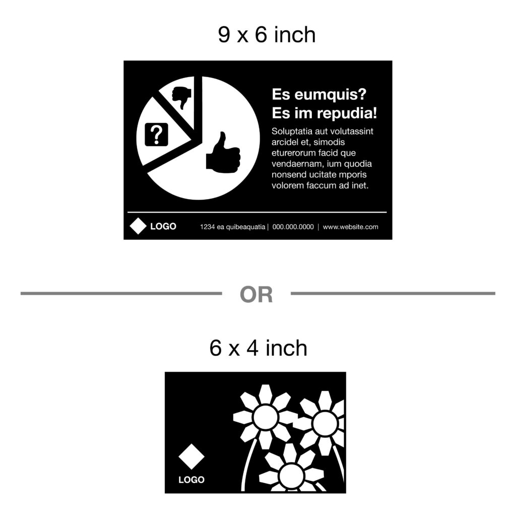Your choice of a double sided 6 x 4 inch or 9 x 6 inch postcard. Includes one design concept and two rounds of revisions at no extra cost.